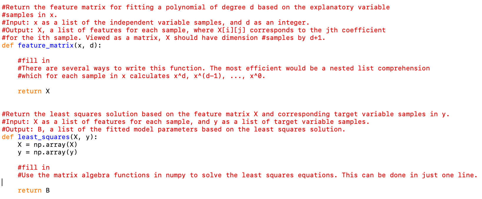 Solved #Return the feature matrix for fitting a polynomial | Chegg.com