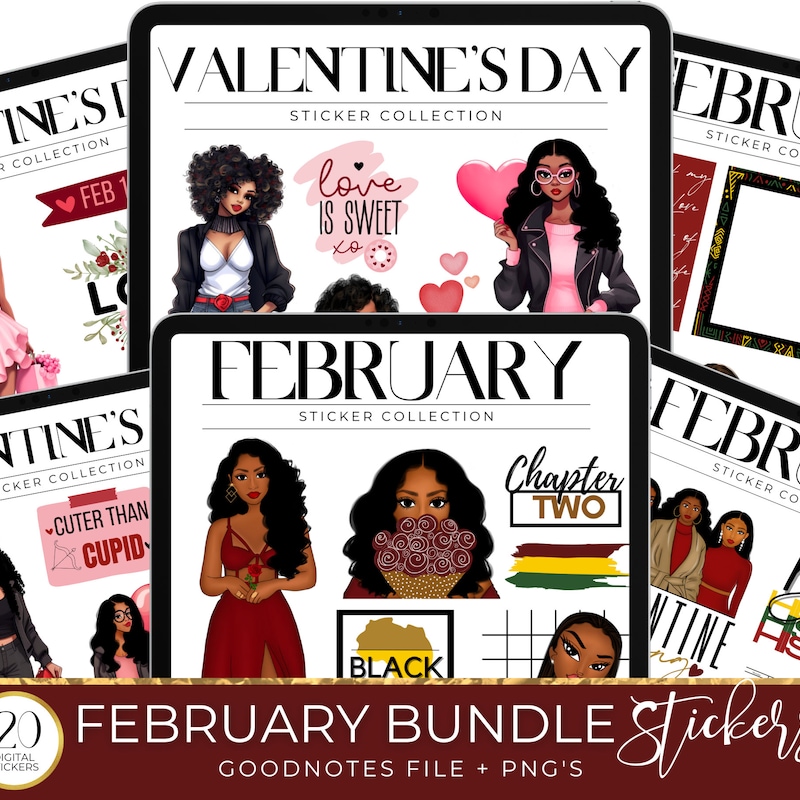 February Digital Stickers, 500+ Digital February Sticker Set ...