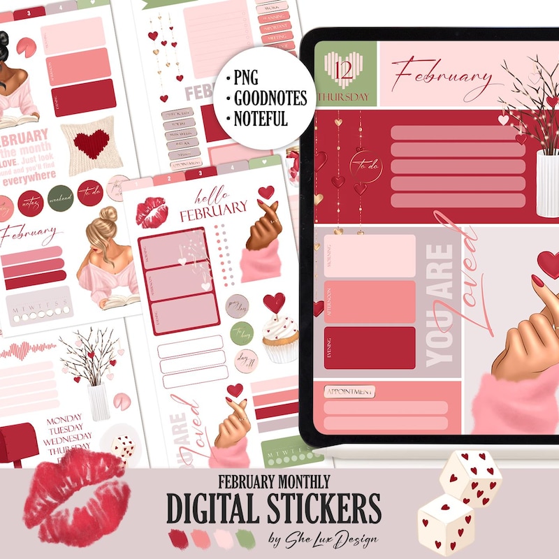 FEBRUARY MONTHLY KIT Digital Stickers February Goodnotes - Etsy