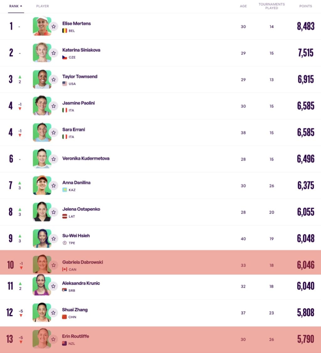 WTA Rankings Report – As of Feb. 16, 2026 – Open Court