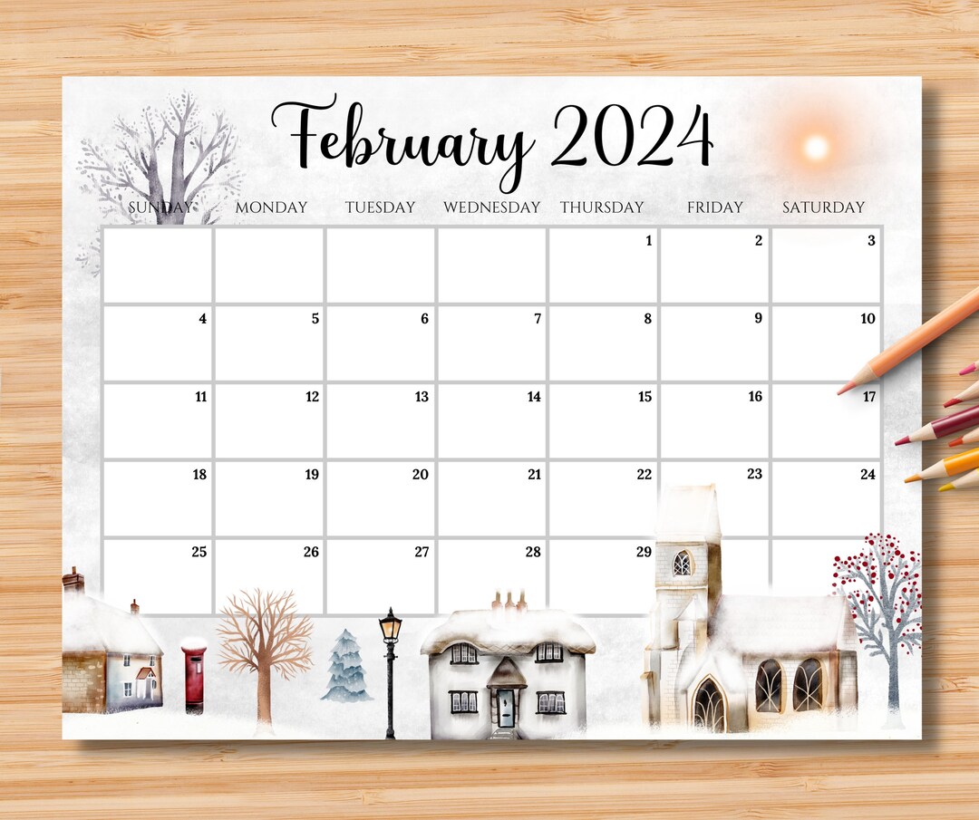 Calendario EDITABLE de febrero de 2024, Hermoso día de invierno en un ...