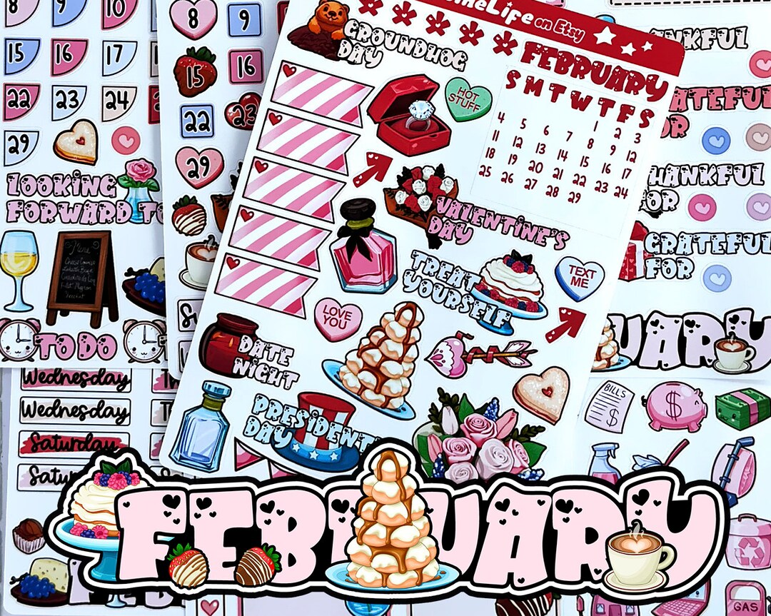 February Monthly Sticker Kit, February Planner Stickers, February ...