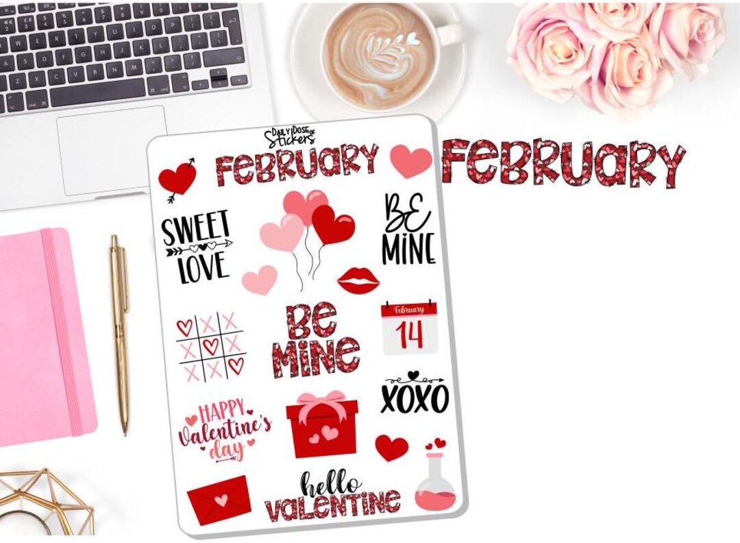 Valentine's Day Decorative Stickers, February Planner Sticker, February ...