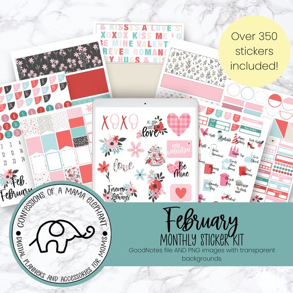 February Digital Stickers, 500+ Digital February Sticker Set ...