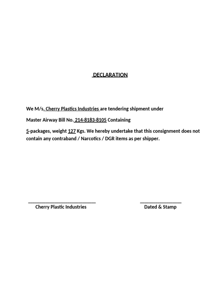 Declaration for Shipper[1] | PDF