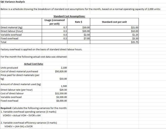 Solved Q6: Variance Analysis Below is a schedule showing the | Chegg.com