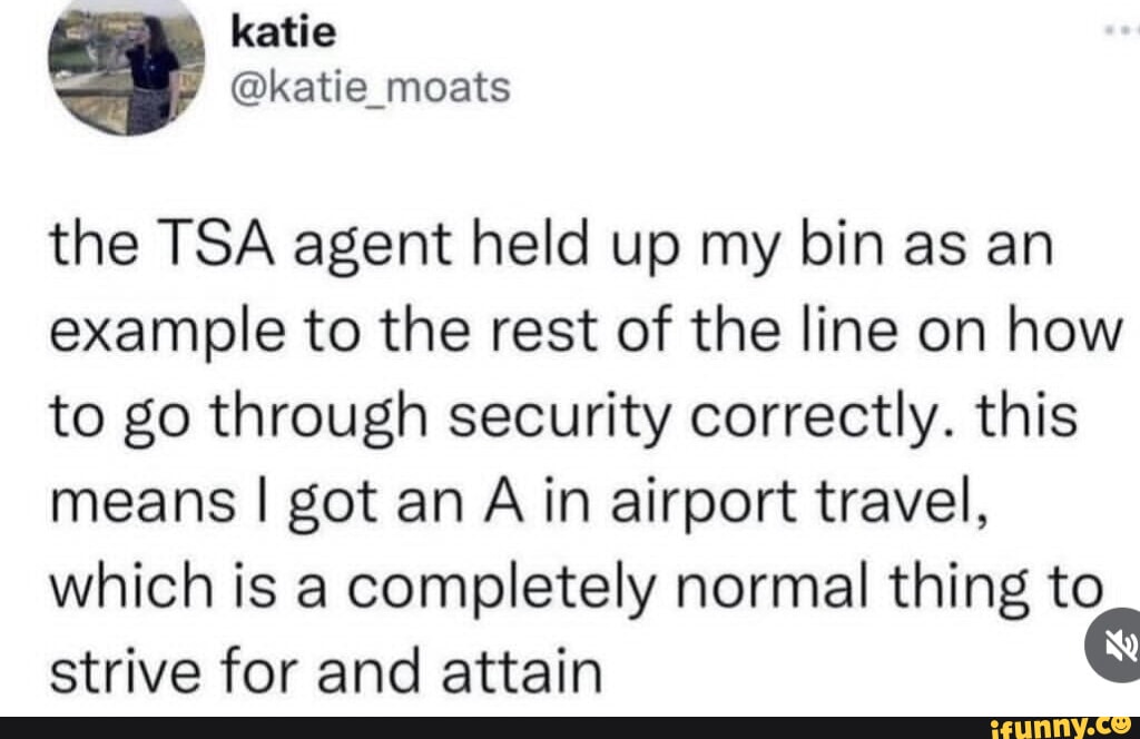 \ katie the TSA agent held up my bin as an example to the rest of the ...
