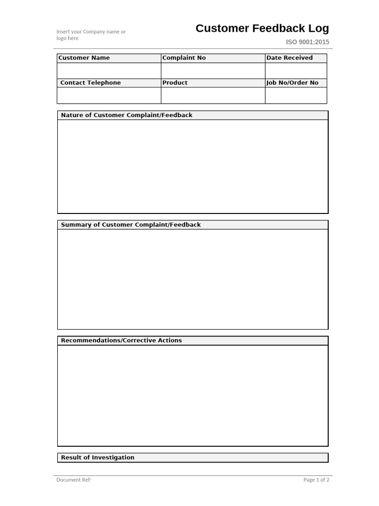 Customer Feedback Log Template in Word, Google Docs, Pages - Download ...