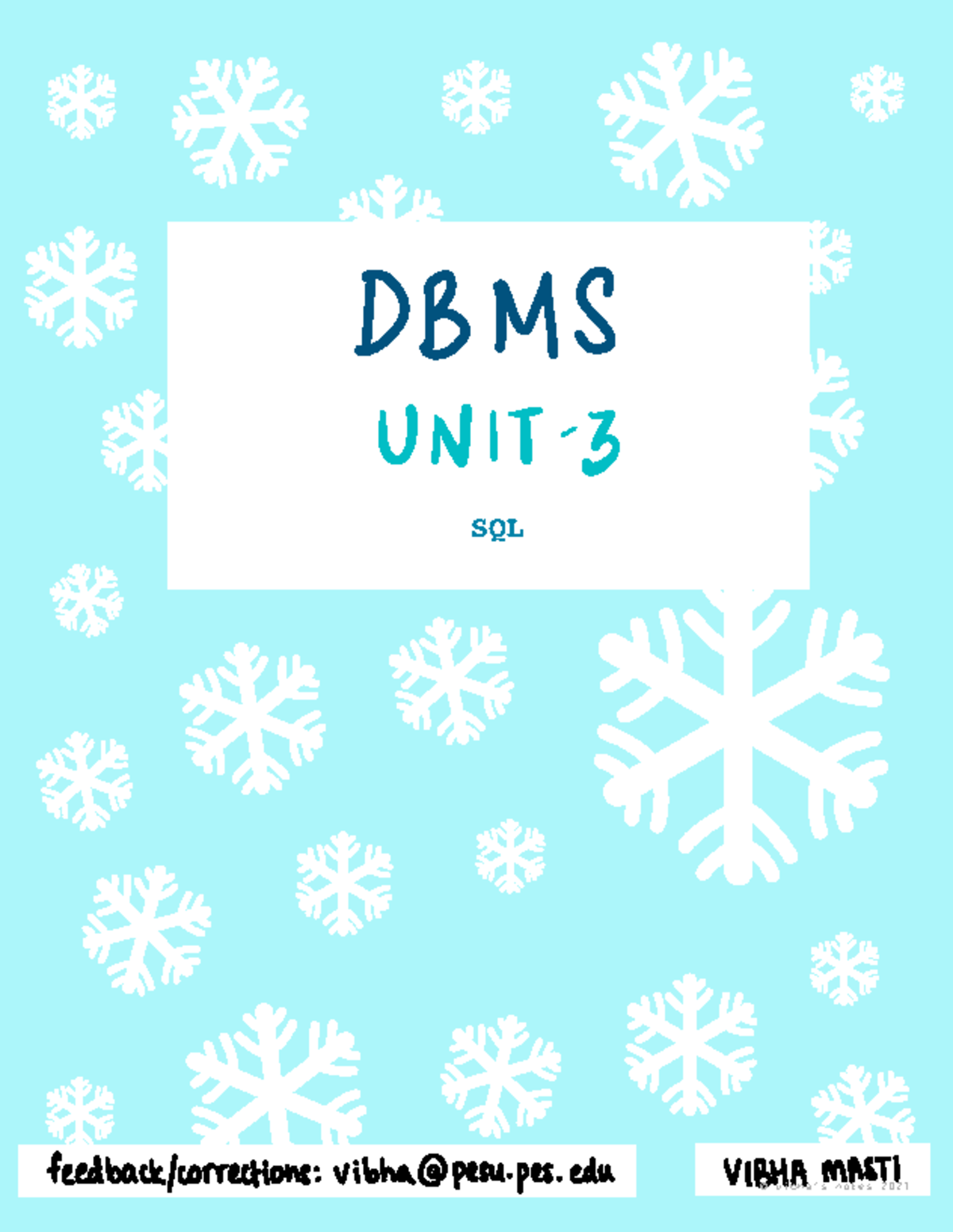 DBMS Unit 3 - SQL Feedback Corrections and Notes 2021 - Studocu