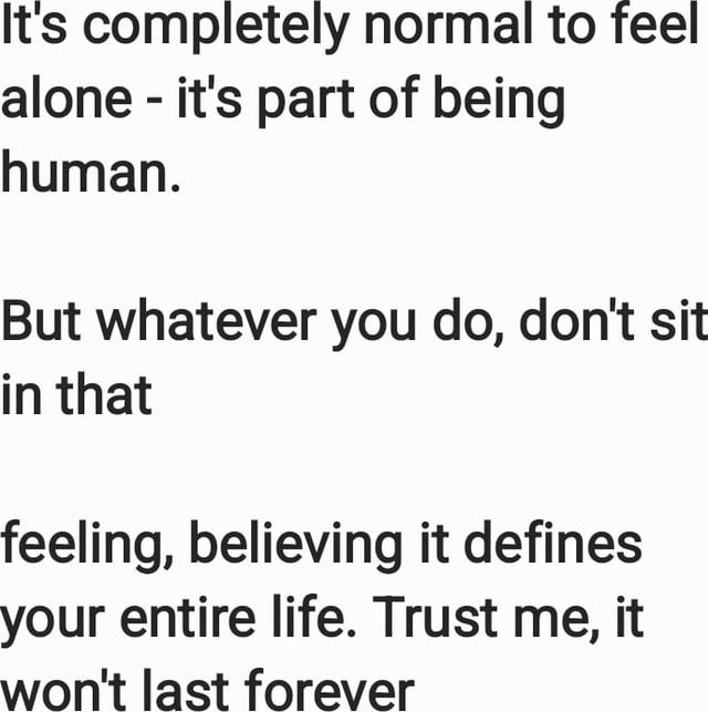 Its completely normal to feel alone - it's part of being human. But ...
