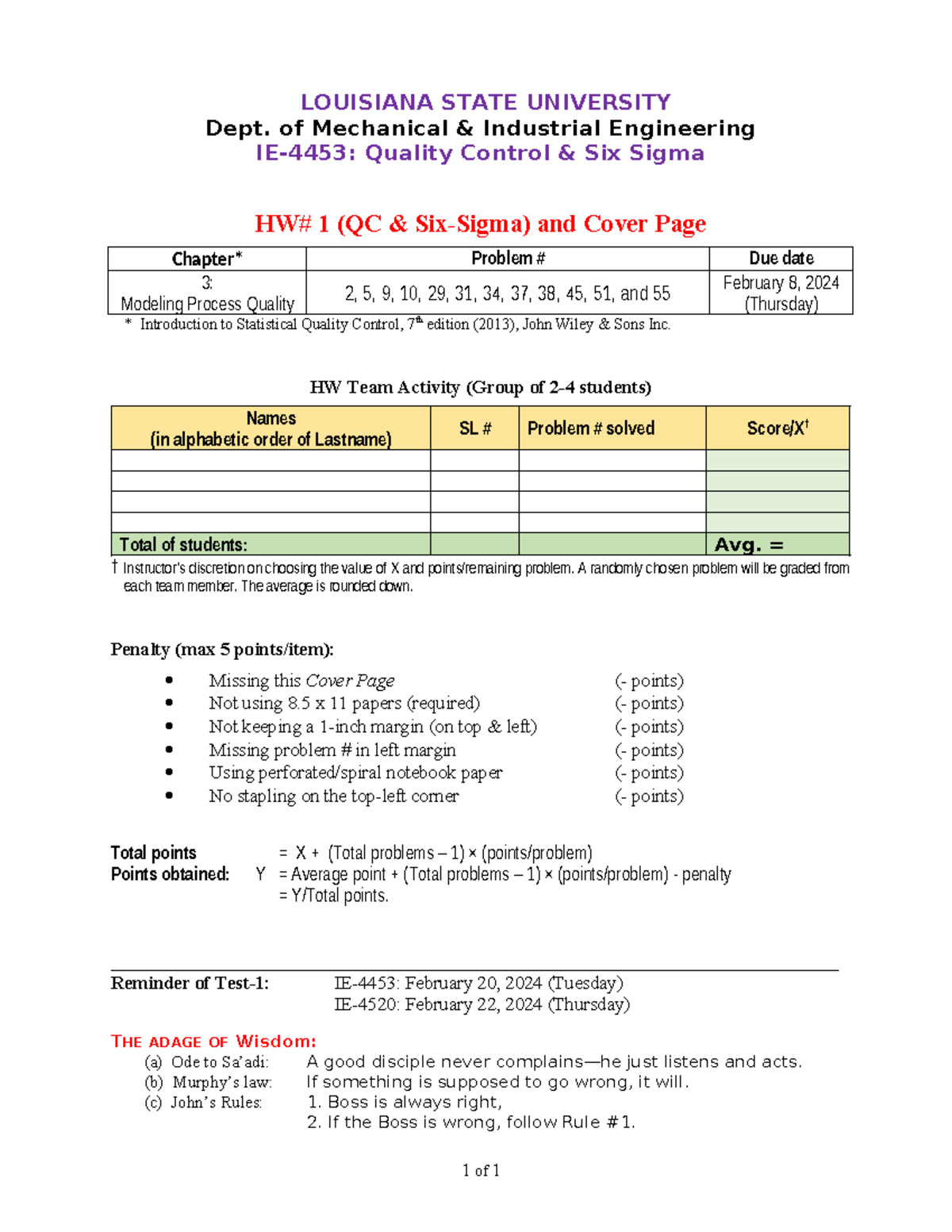 2024 Spg HW #1 Ch-03 (IE-4453) QC - LOUISIANA STATE UNIVERSITY Dept. of ...