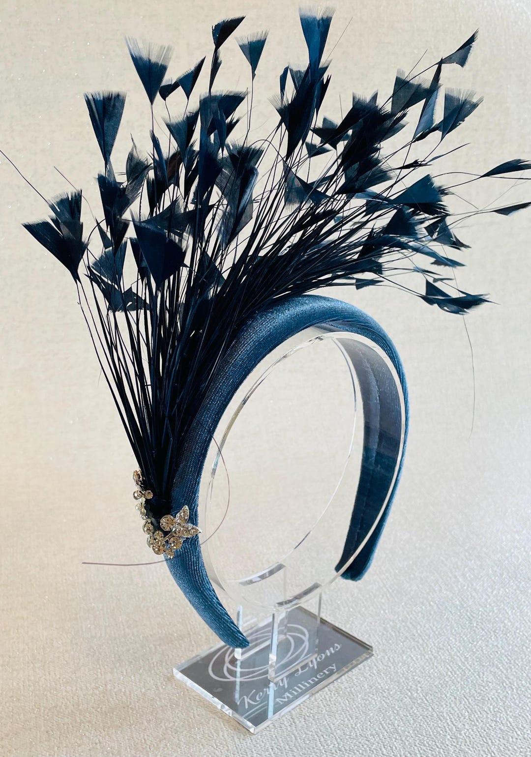 Beautiful Blue Fascinator Velvet Padded Headband With Feathers. for ...