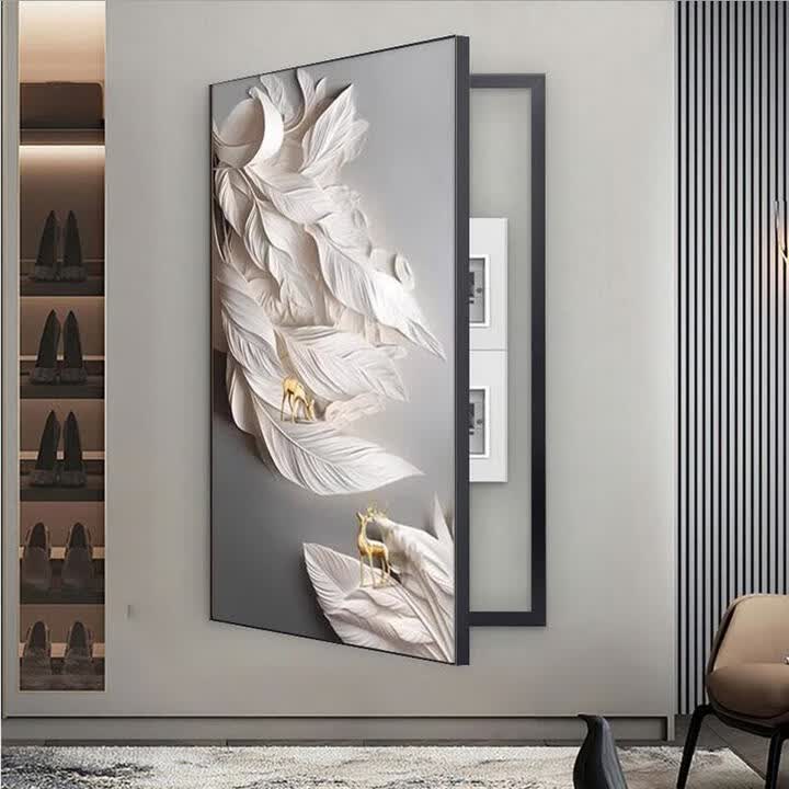 何佳功新款中式羽毛电表箱装饰画简约大气遮挡消防栓配电箱尺寸挂画 02款 黑铝框 右翻盖70x140【图片 价格 品牌 报价】-京东