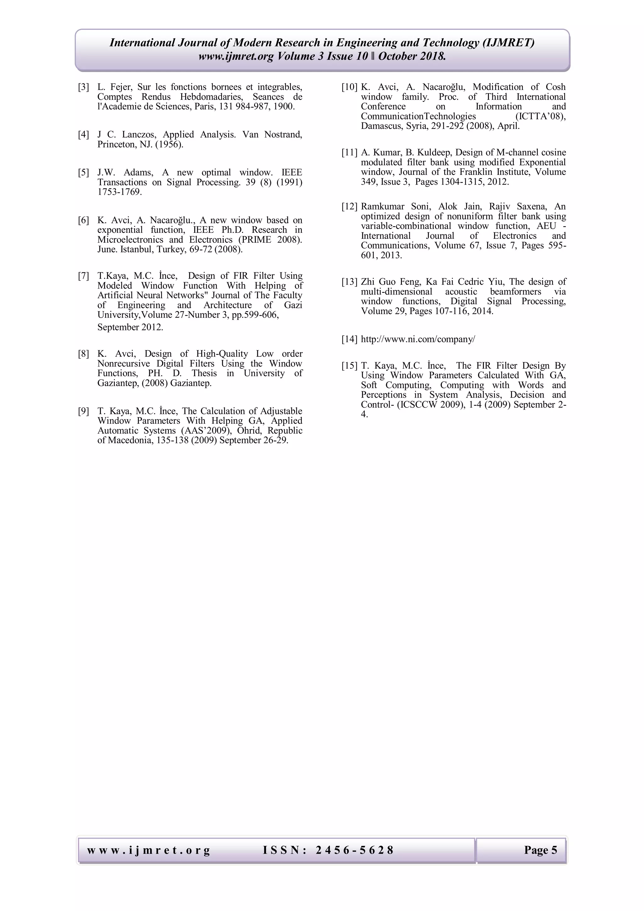 (PDF) A Comparative Study on Window Functions for Designing Efficient ...
