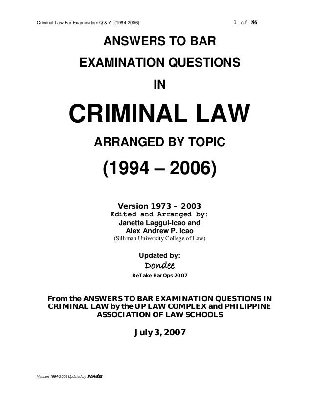 Criminal Law Questions And Answers