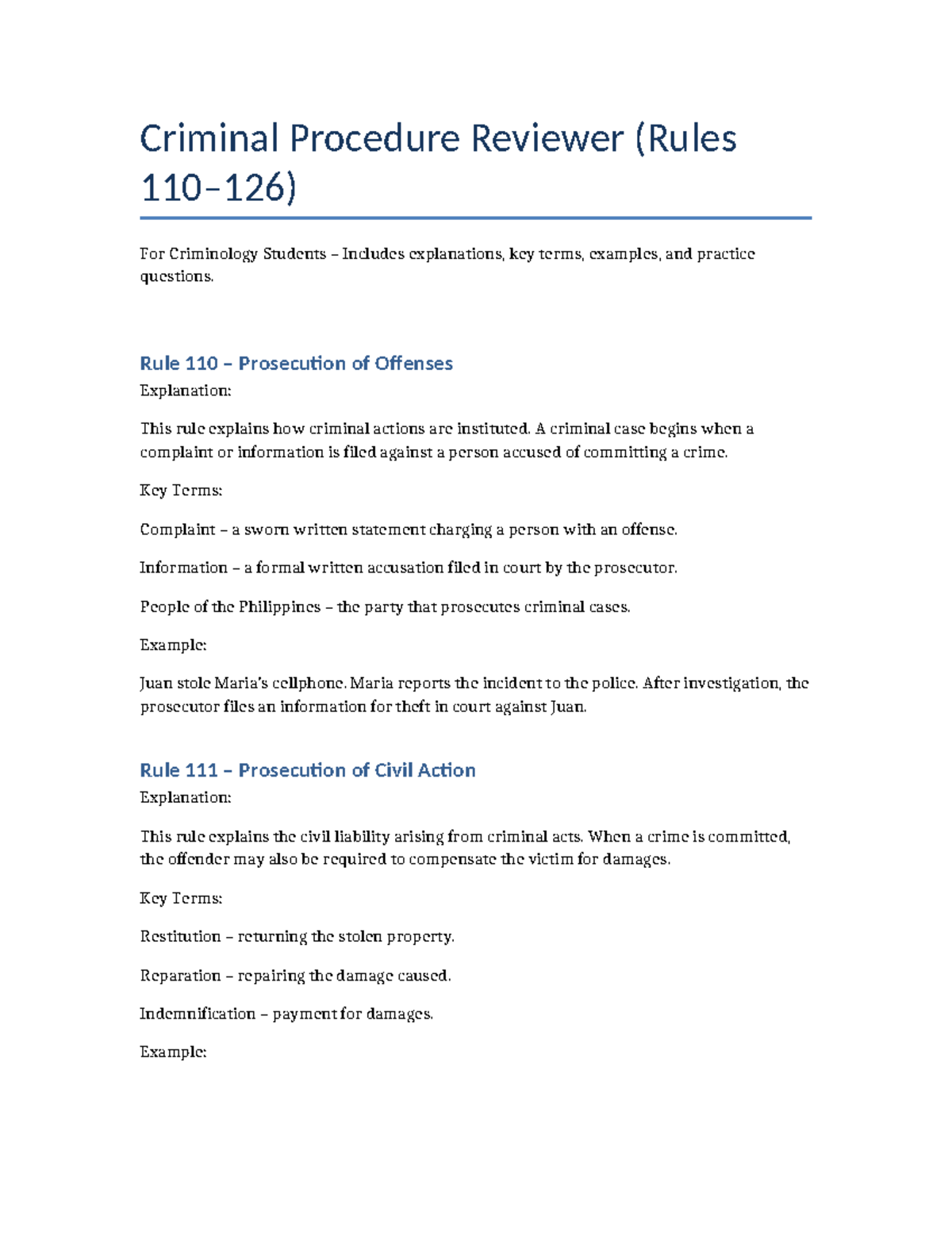 Criminal Procedure Complete Reviewer for Criminology Students - Studocu