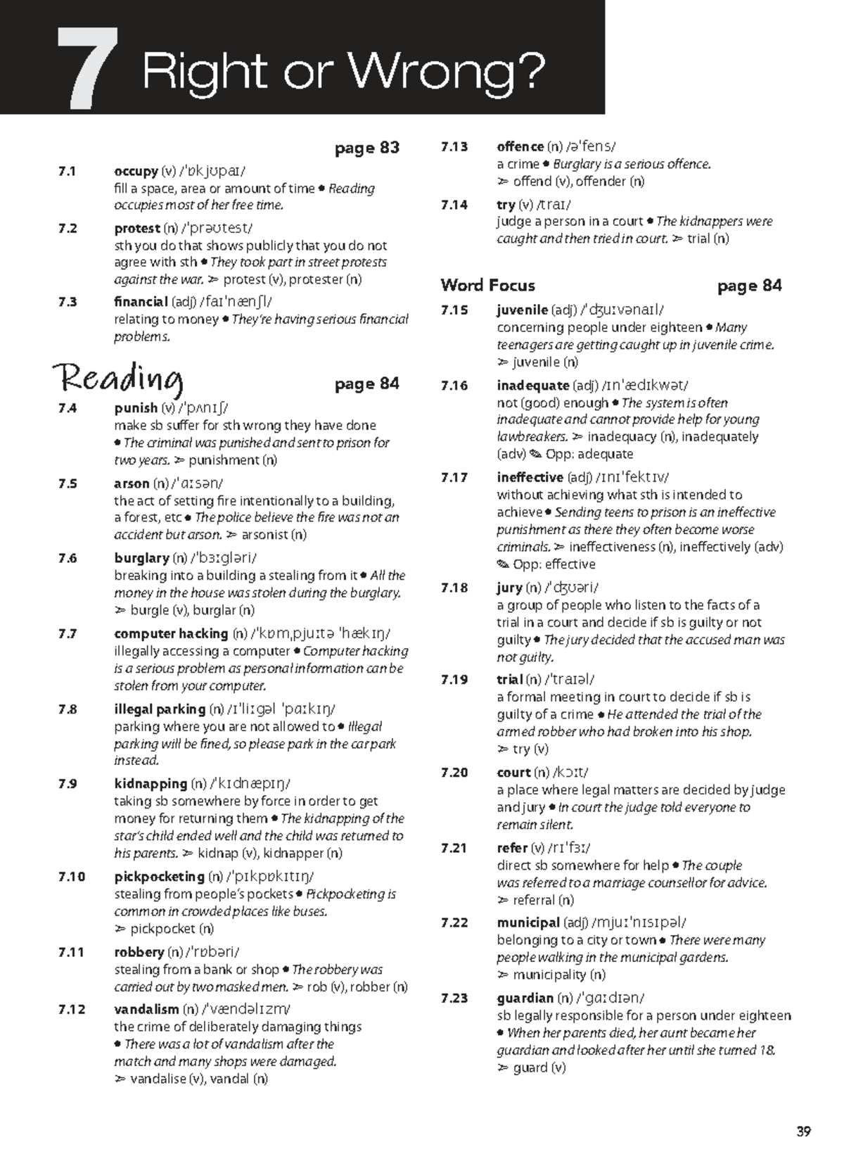 B2 Unit 7 Vocabulary: Crime and Criminal Justice Terms - Studocu