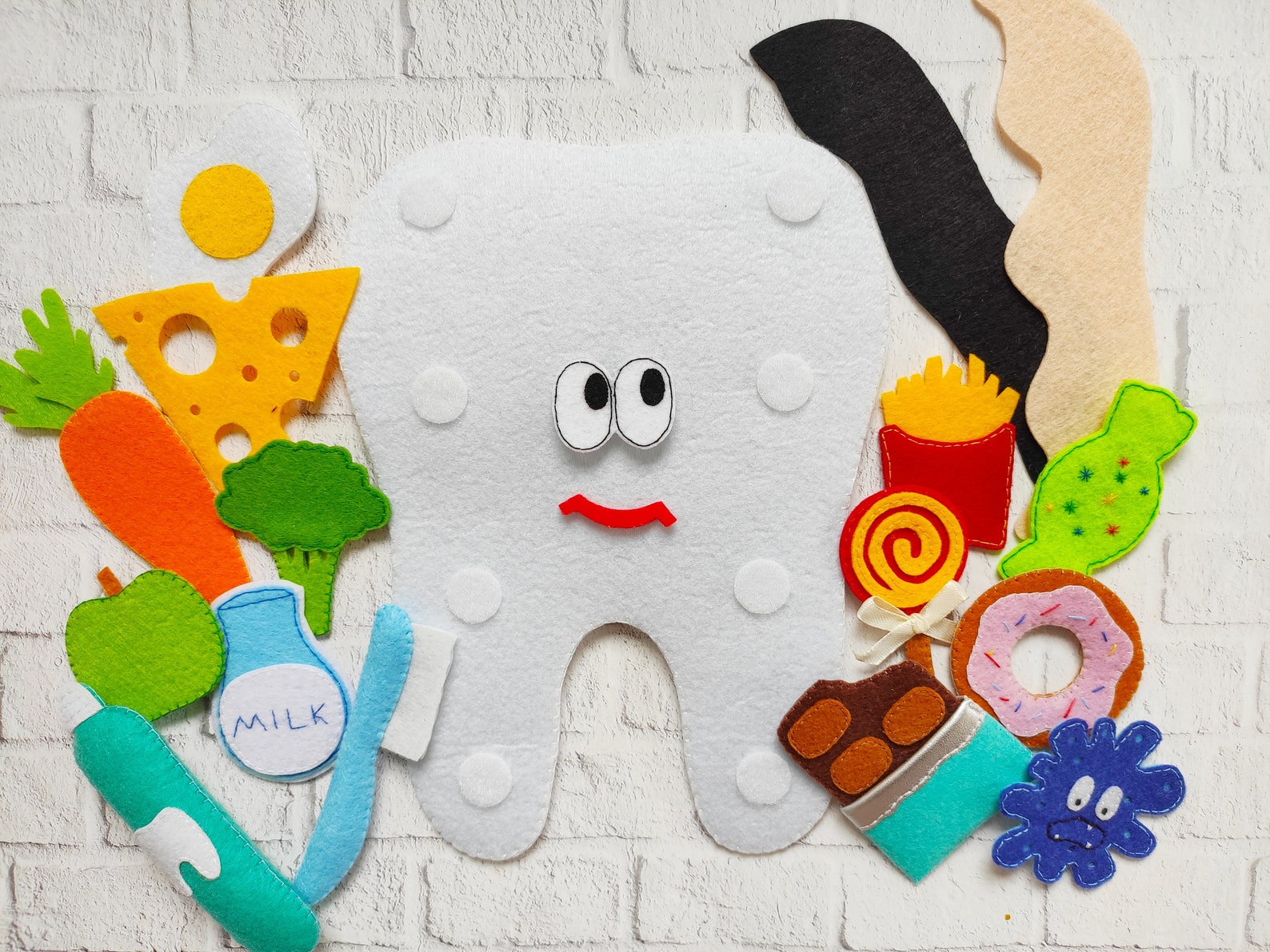 Felt Game clean Tooth. Felt Happy Tooth and Sad Tooth. Tooth Brushing ...