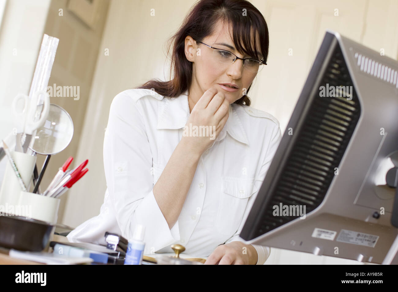 Woman looking at a computer in frustration Stock Photo - Alamy