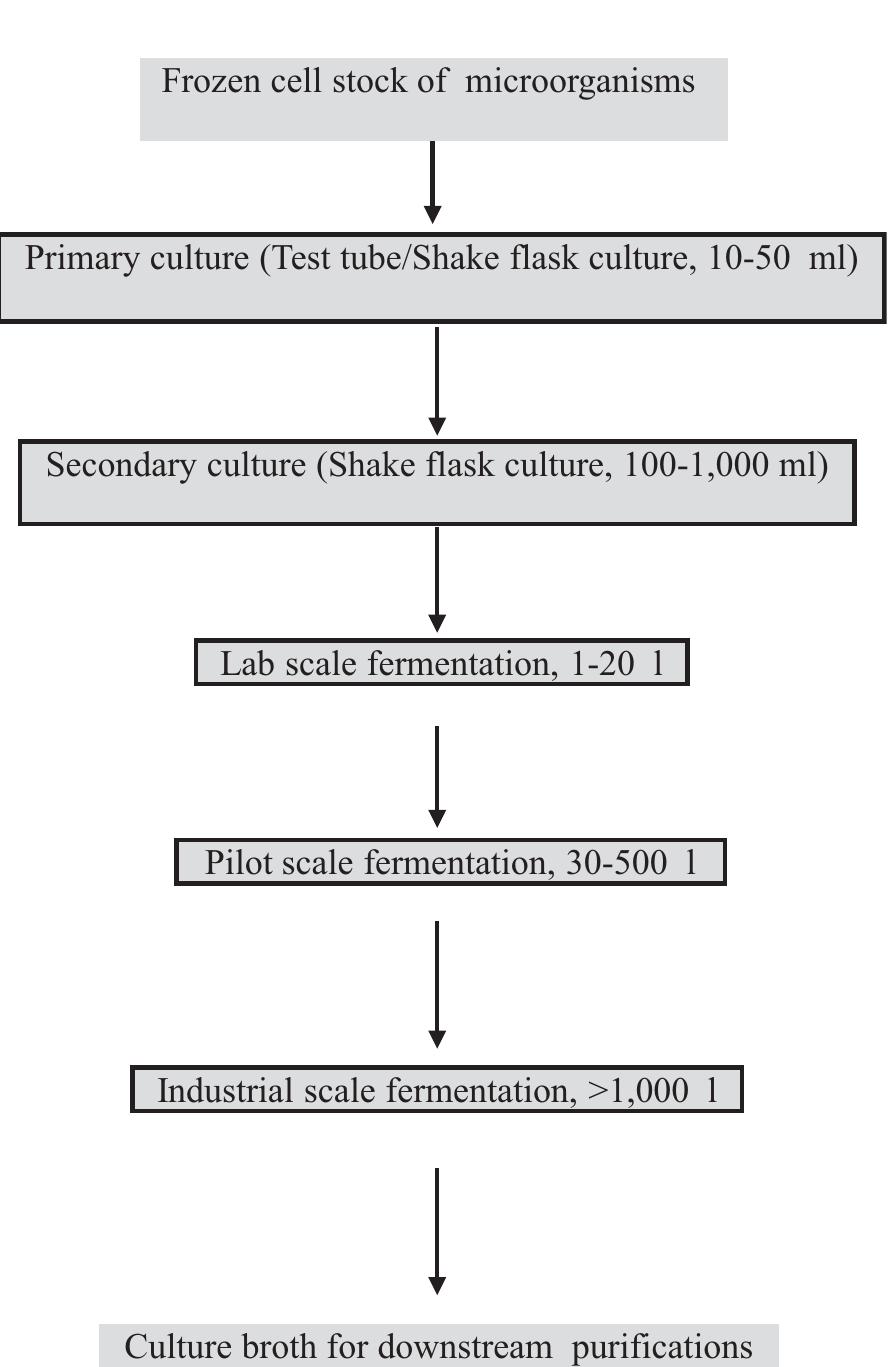 Flow chart showing large scale fermentation process- es for
