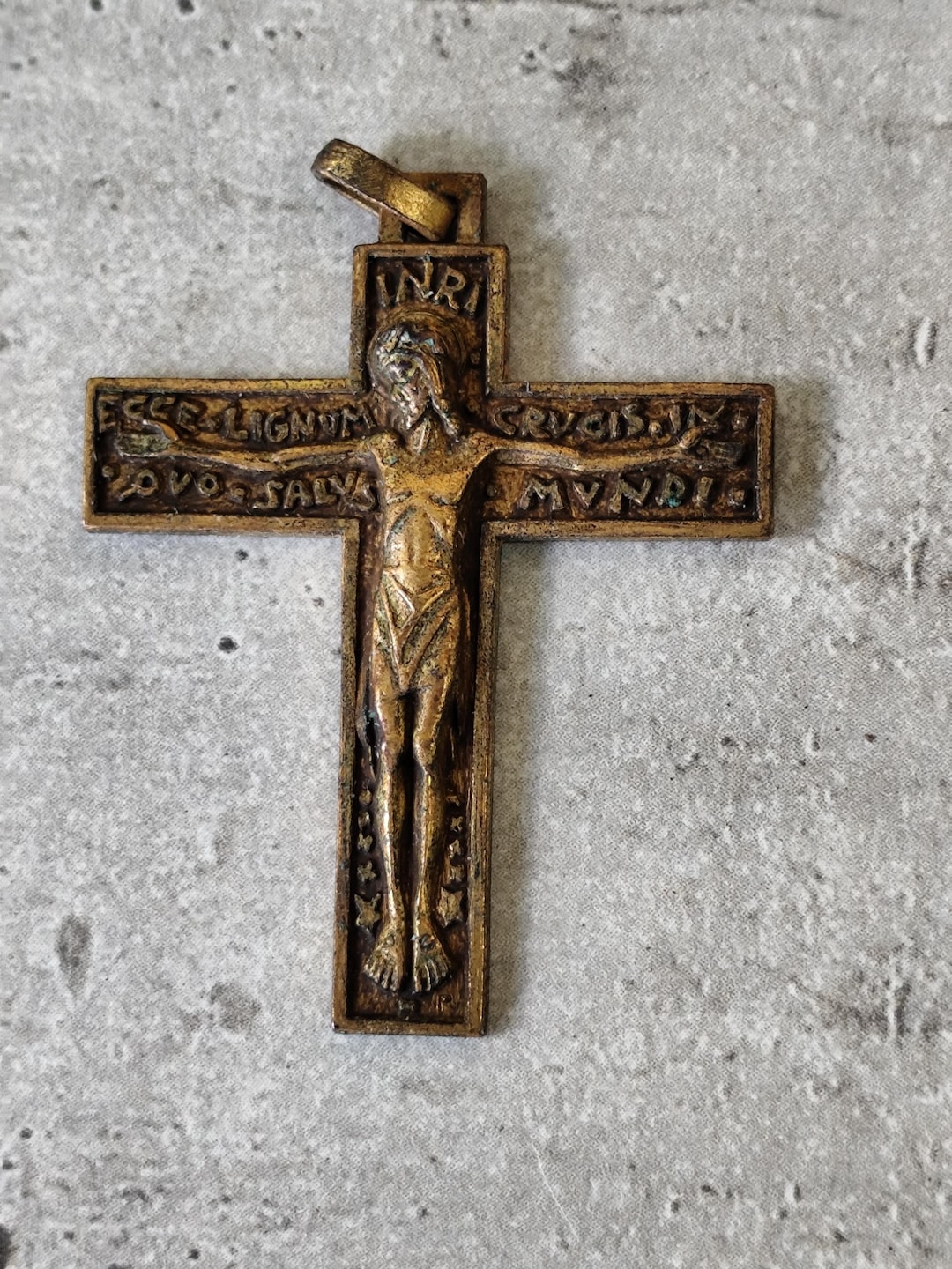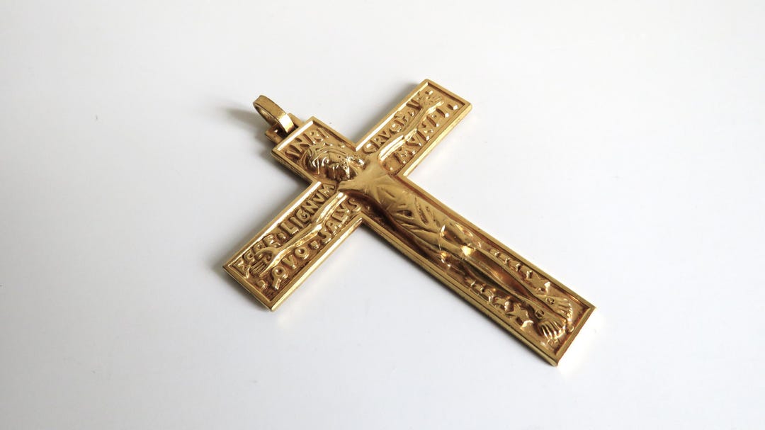 Art Deco Gilt Bronze Pectoral Cross Pendant for Men, Crucifix Necklace ...