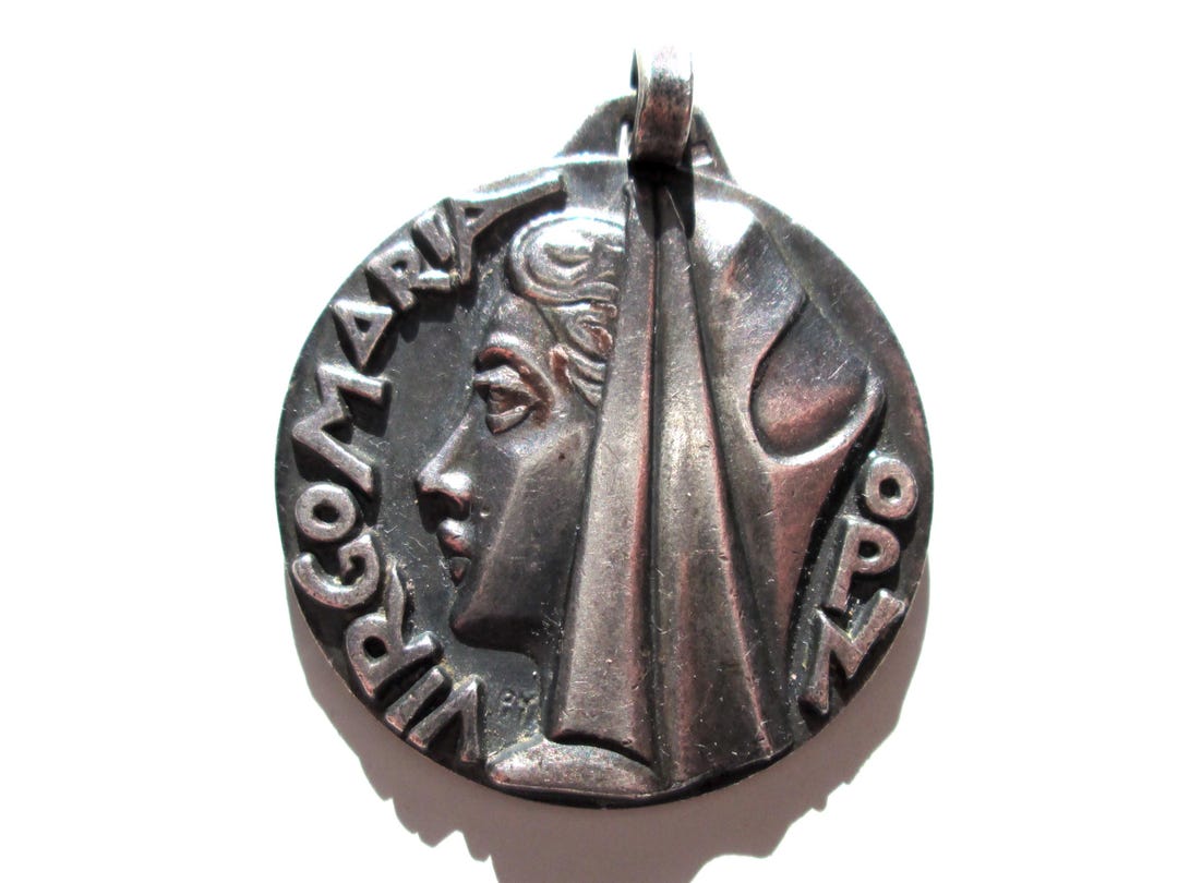 Art Deco Our Lady of Fatima Medal, Fernand PY Silver-plated Pendant - Etsy