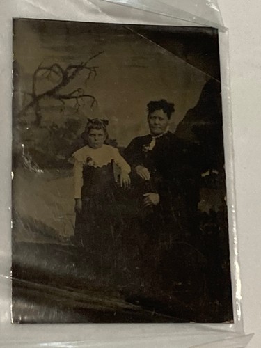 TINTYPE,FERROTYPE OF YOUNG MOTHER AND GIRL BOTH WEARNG NECKLACES | eBay
