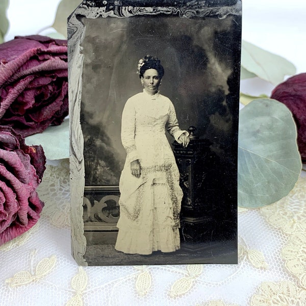VINTAGE PICTURE PHOTO METAL TINTYPE FERROTYPE VICTORIAN WOMAN | eBay