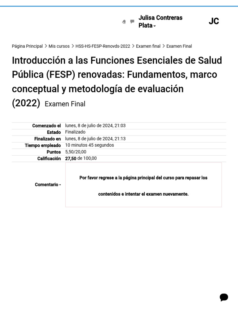 Examen Final de FESP | Descargar gratis PDF | Salud pública | Evaluación