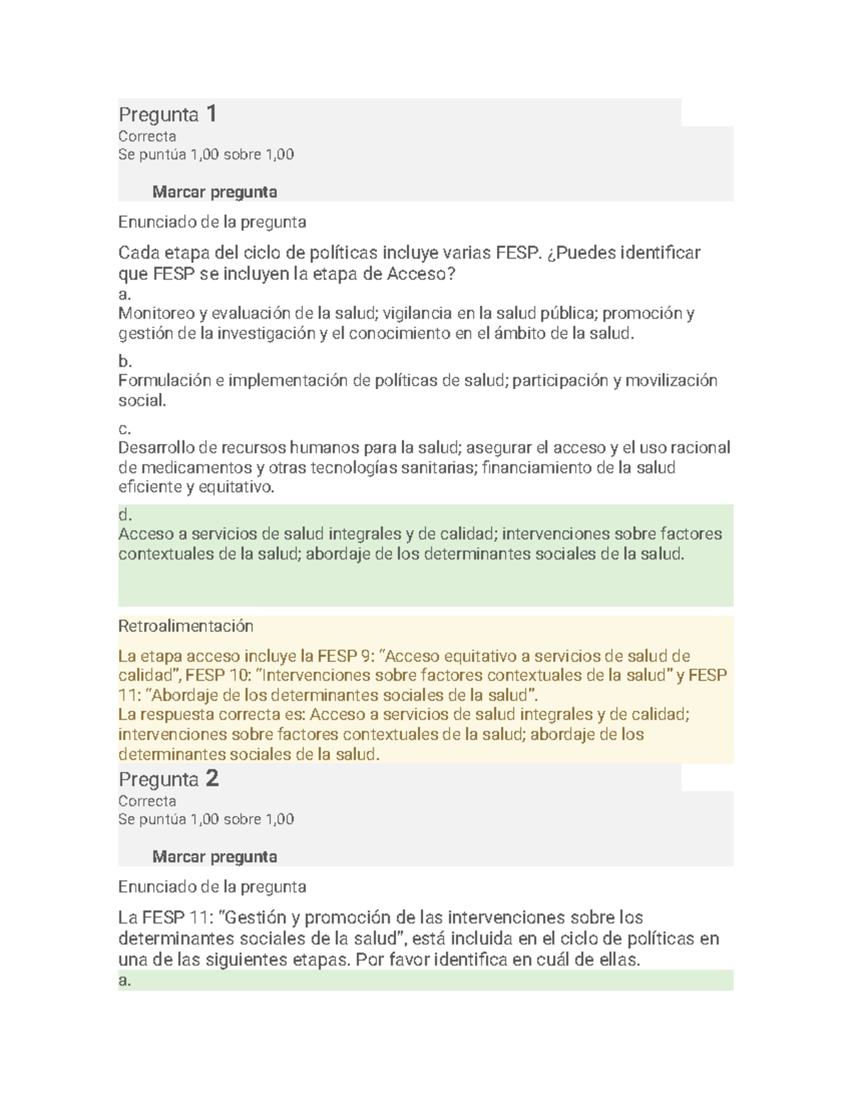 Examen 2 FESP - Evaluación de Capacidades en Políticas de Salud - Studocu