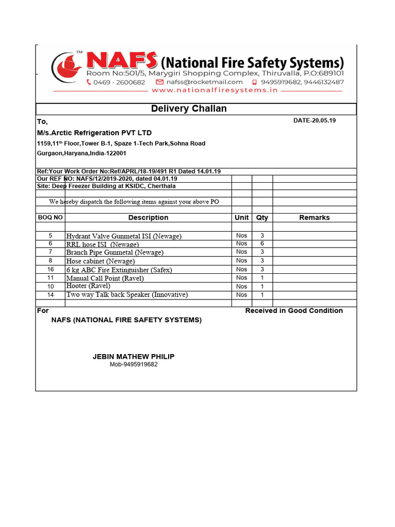 Fire Safety Equipment Delivery Note | PDF