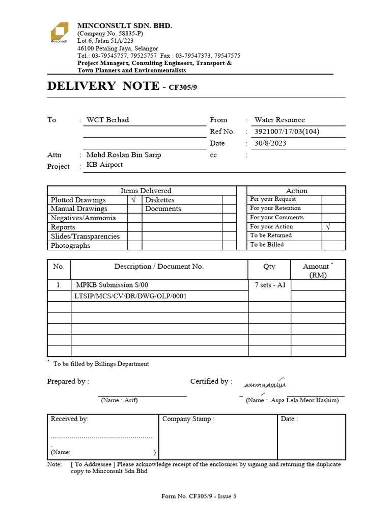 CF305-9 - Issue5 - Delivery Note - 24022022 | PDF | Technology ...