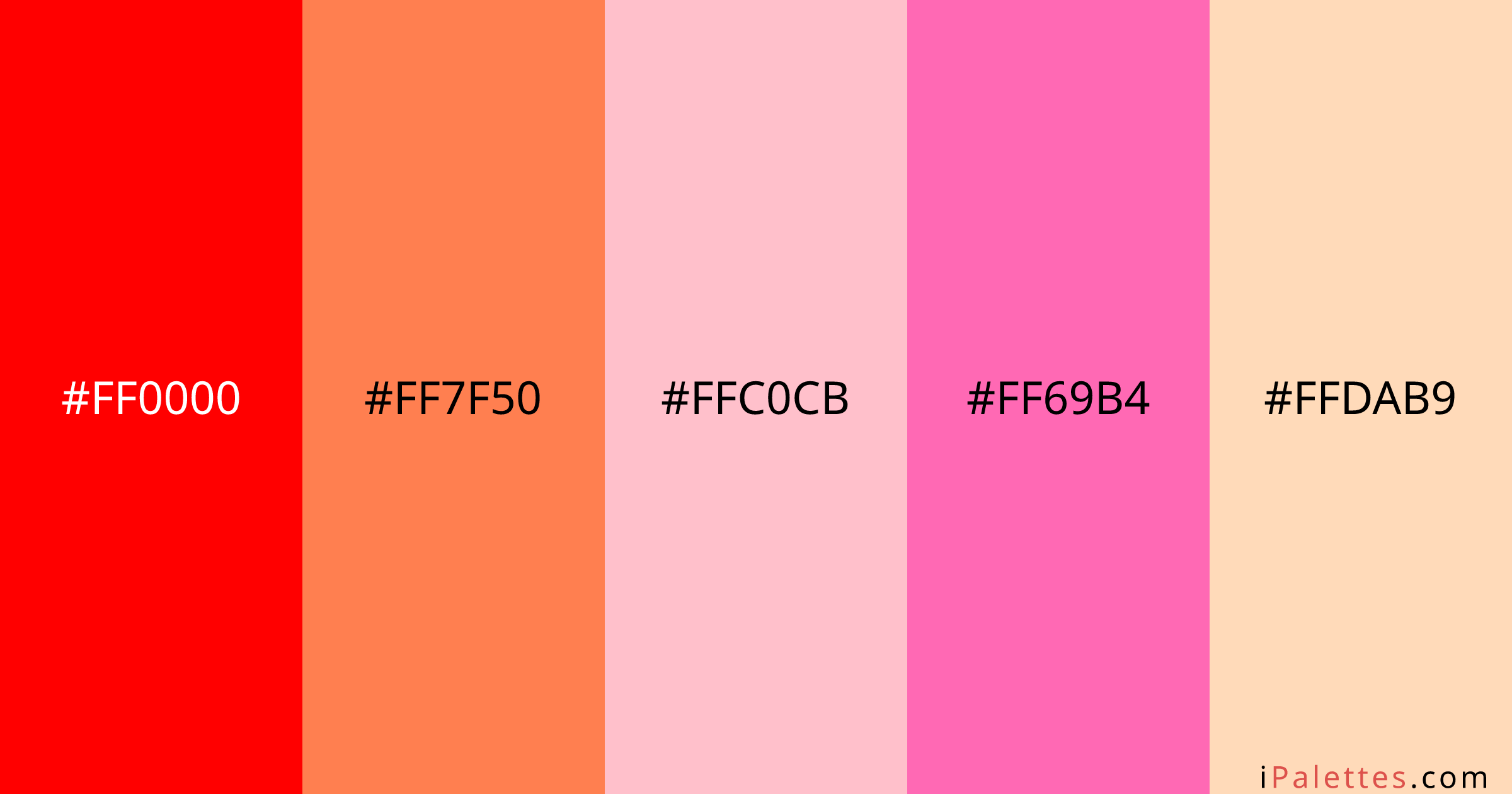 Three Poppy Color Palette and colors #FF0000 #FF7F50 #FFC0CB #FF69B4 # ...