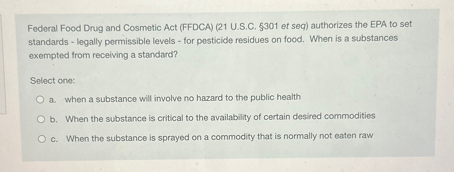 Solved Federal Food Drug and Cosmetic Act (FFDCA) (21 | Chegg.com