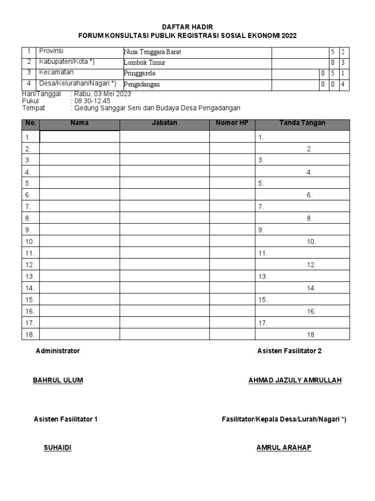 Daftar Hadir Forum Konsultasi NTB | PDF
