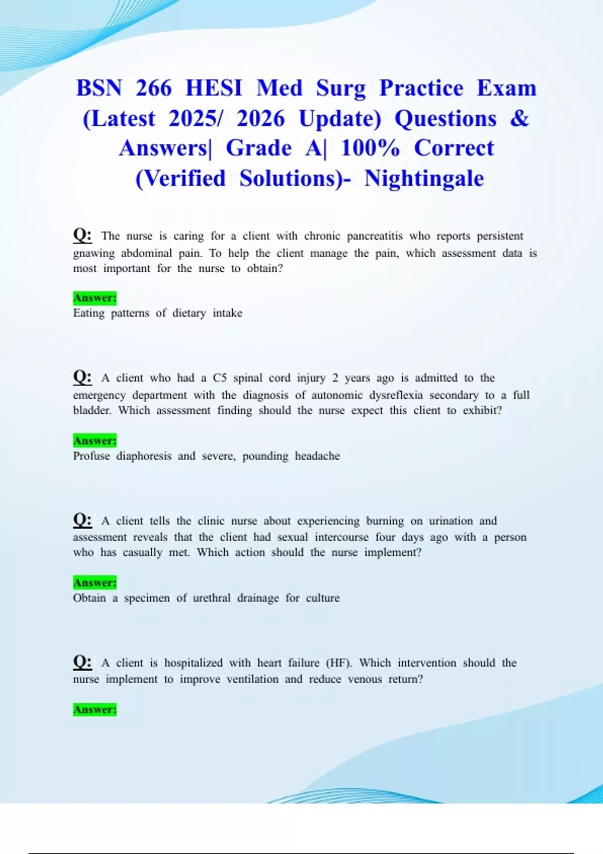 BSN 266 HESI Med Surg Exams (Latest 2025/ 2026 Updates STUDY BUNDLE ...