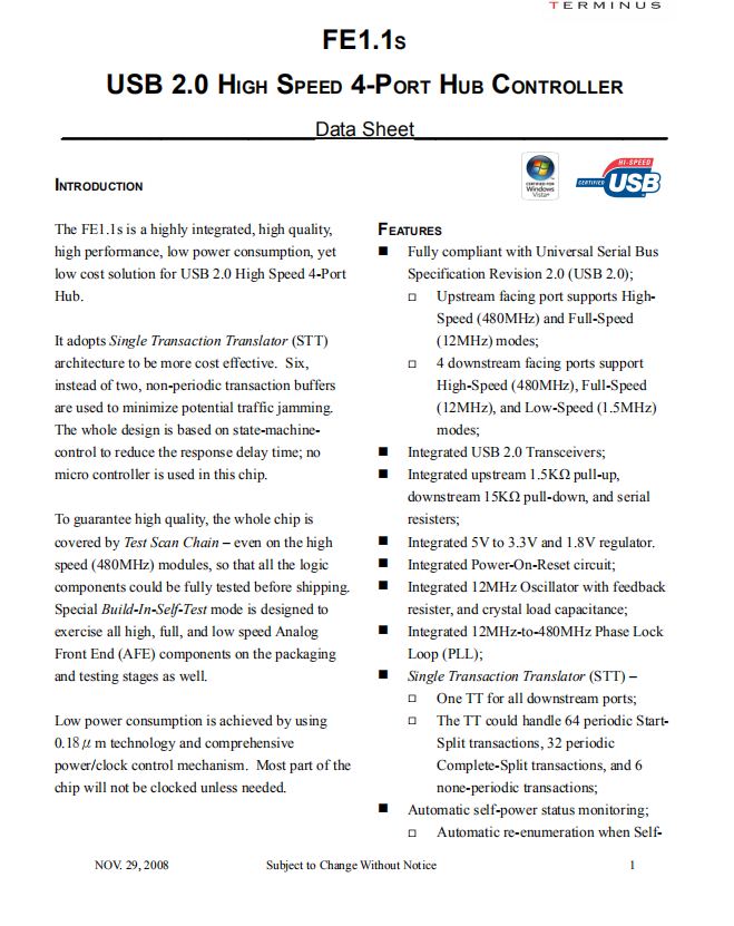 FE12.3 — USB 2.0 4-Port MTT Hub Controller (with Reverse Switch ...