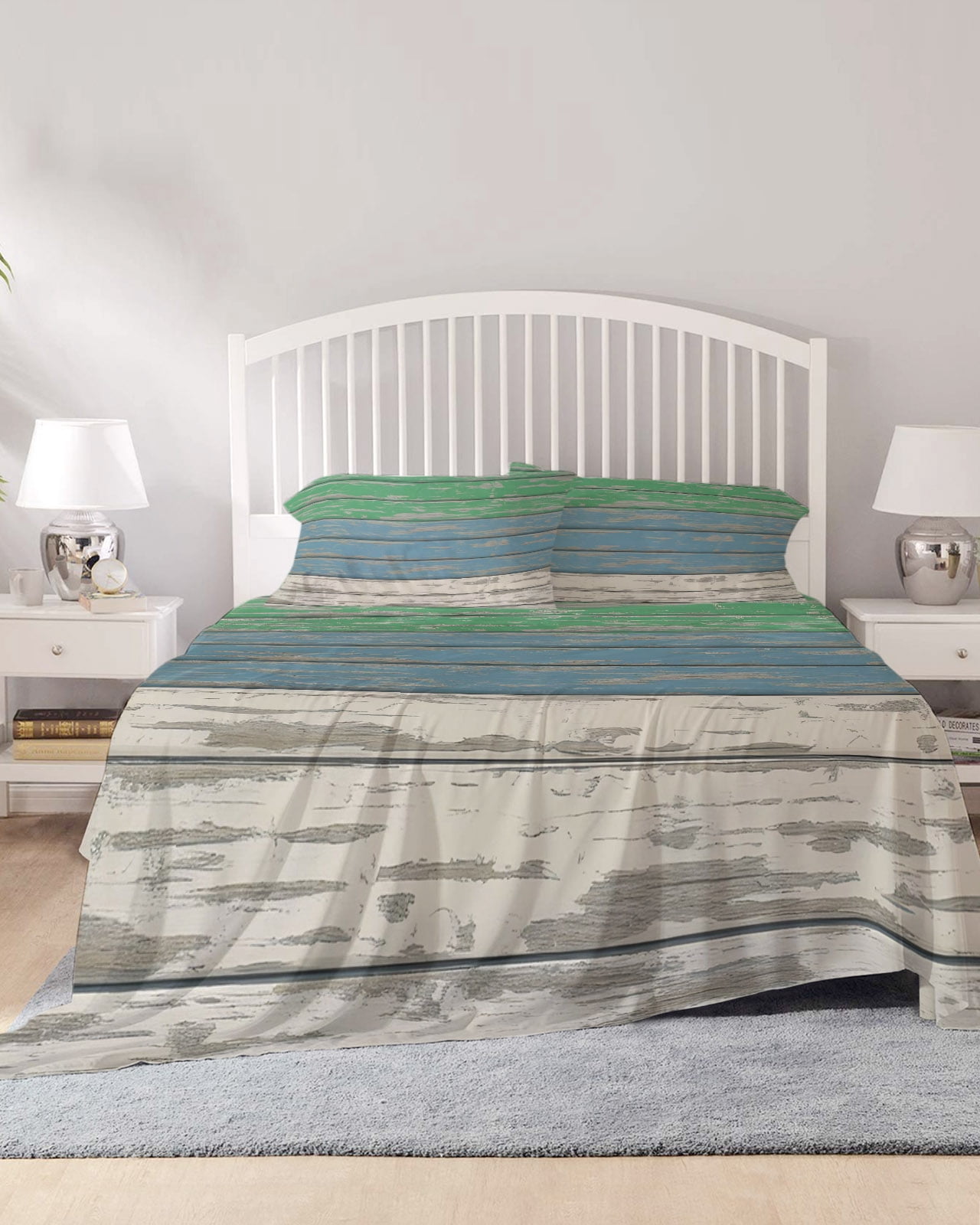 4 Piece Full Sheet Set Green Blue Wood Sheets Set for Full Size Bed ...