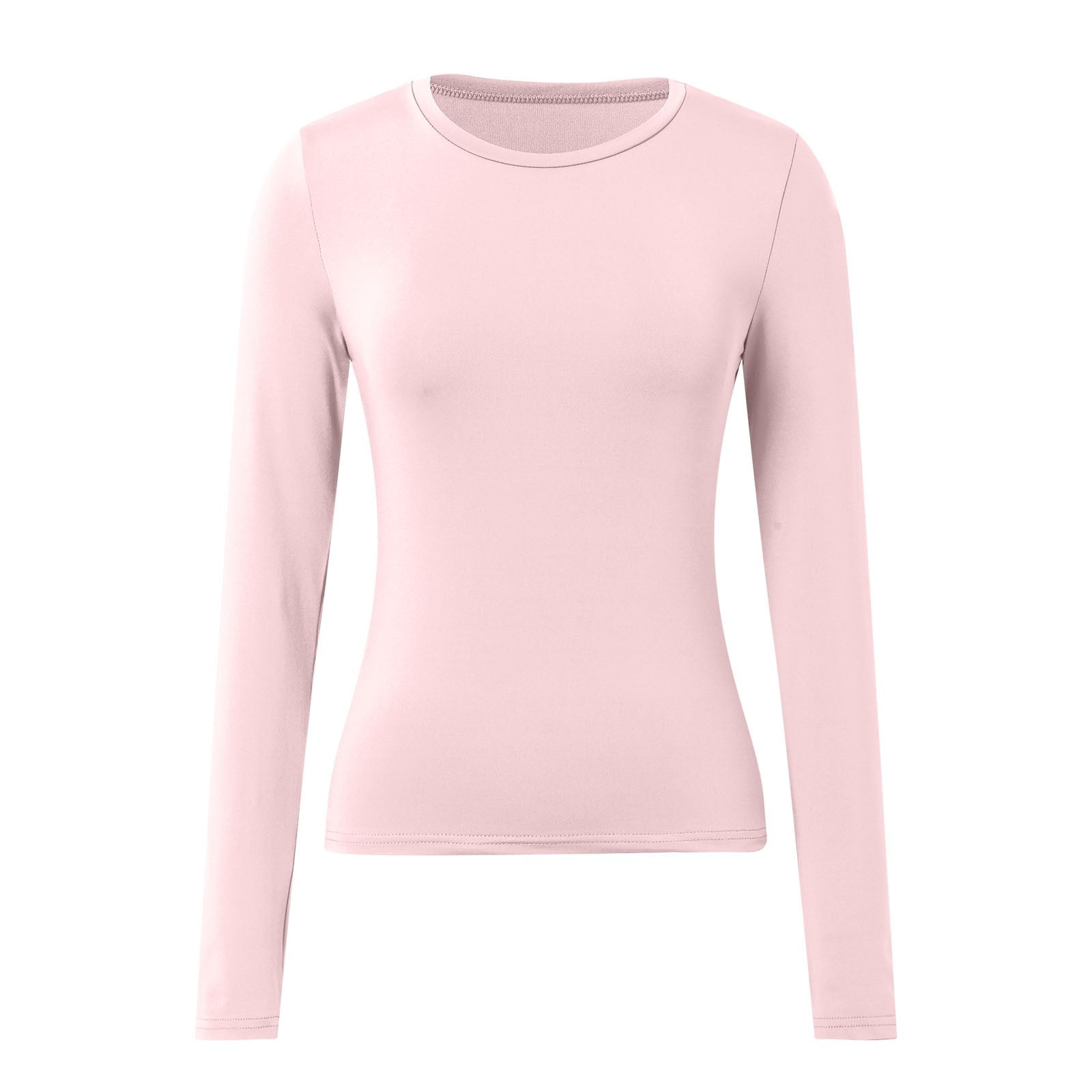 Womens T Shirts Long Sleeve Solid Color Slim Fit Base Casual Top Blouse ...