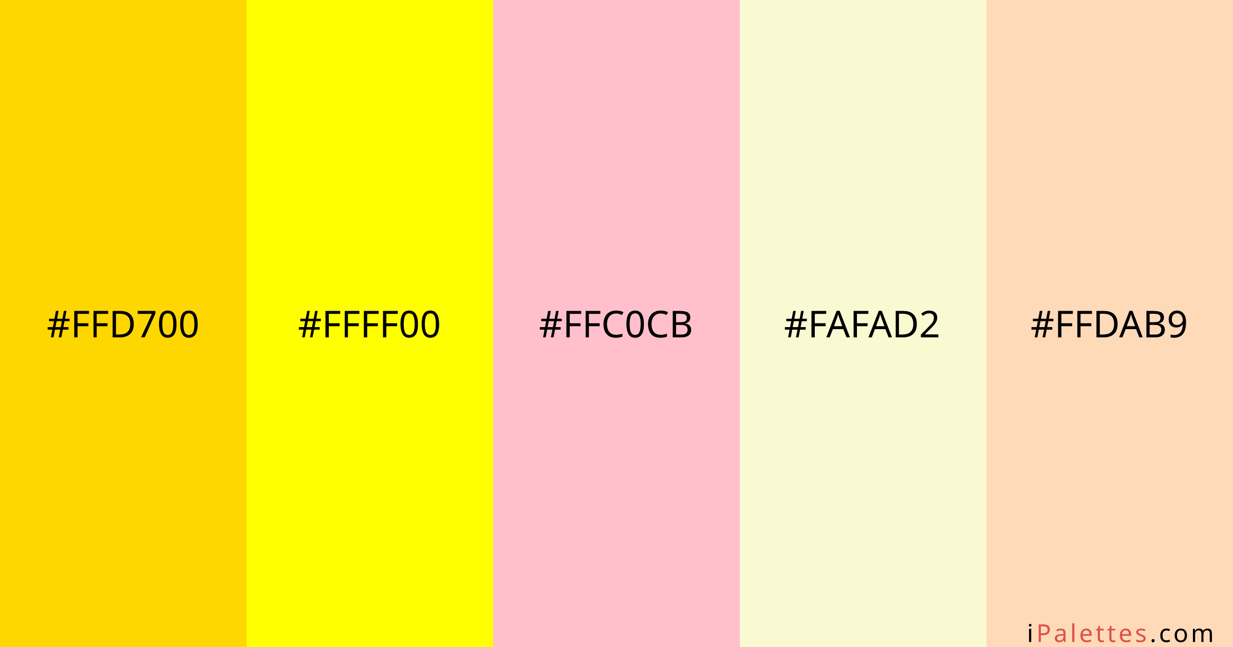 Yellow Color Palette and colors #ffd700 #ffff00 #ffc0cb #fafad2 #ffdab9 ...
