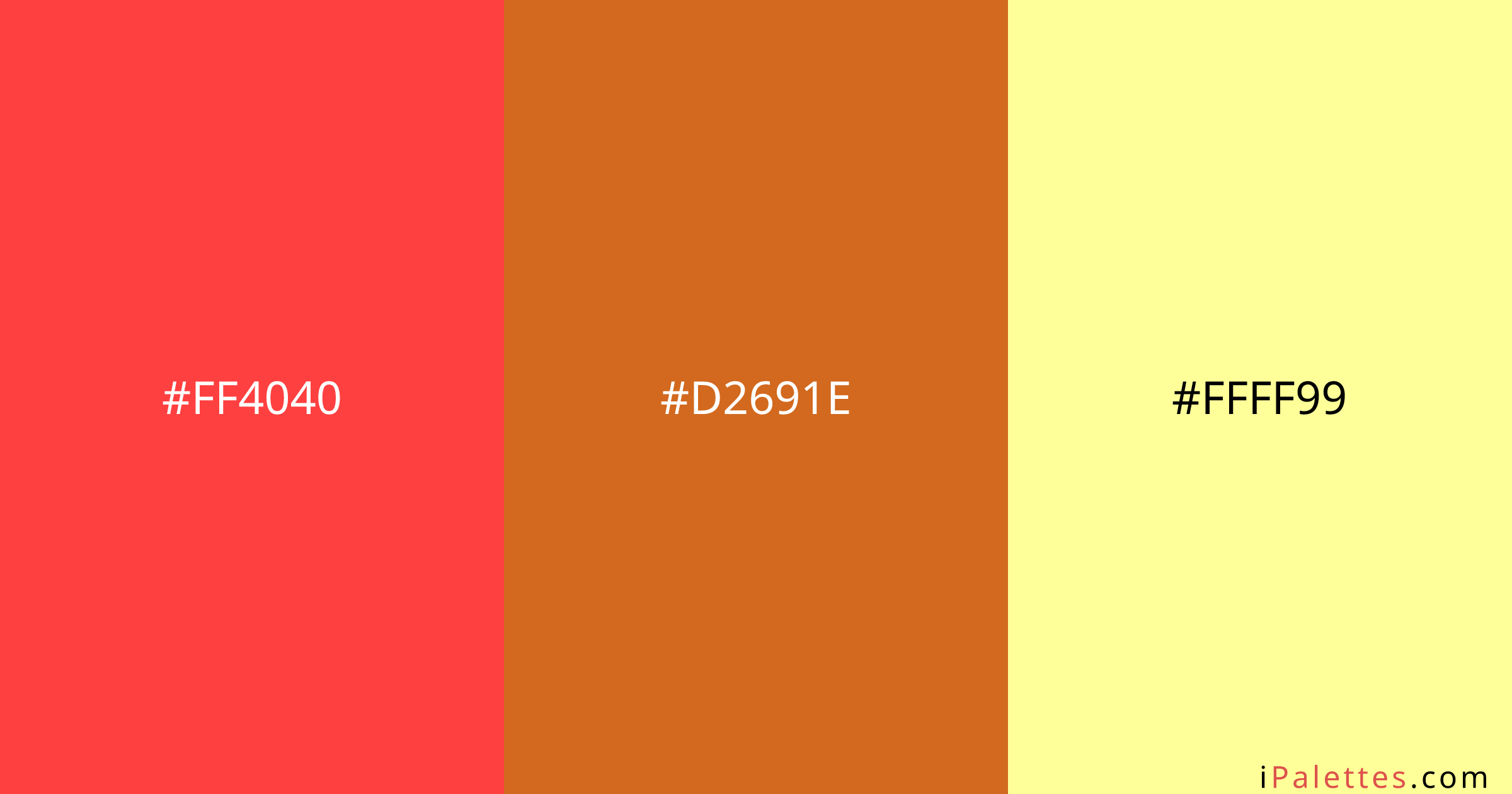 Neapolitan Color Palette and colors #FF4040 #D2691E #FFFF99 - IPalettes