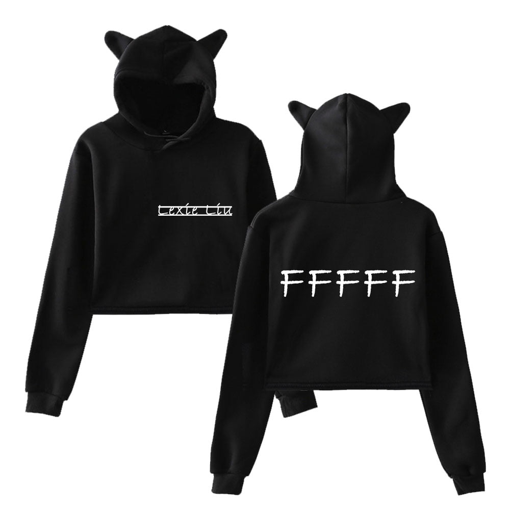 Lexie Liu FFFFF Logo Girl's Cute Cat Ear Cropped Pullover Hoodie Hooded ...