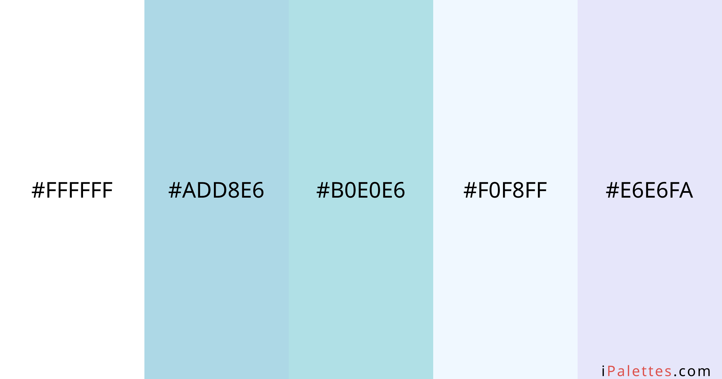 Ice Color Palette and colors #FFFFFF #ADD8E6 #B0E0E6 #F0F8FF #E6E6FA ...