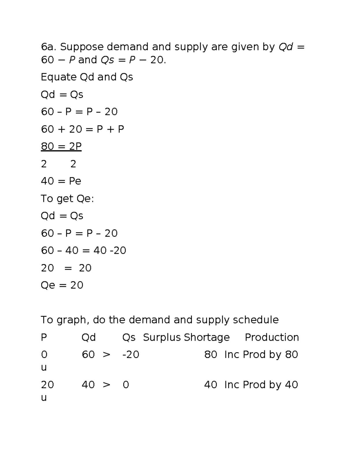 Equilibrium - ffffffffff - 6a. Suppose demand and supply are given by ...