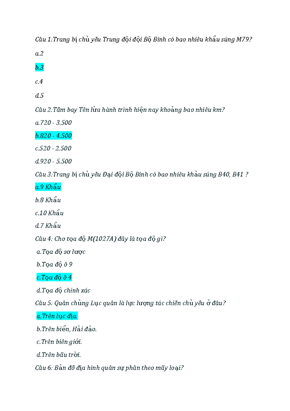 TRẮC-NGHIỆM-HP3 - ffffffffff - Câu 1:Trang b chị ủ yếếu Trung đ i đ i ...