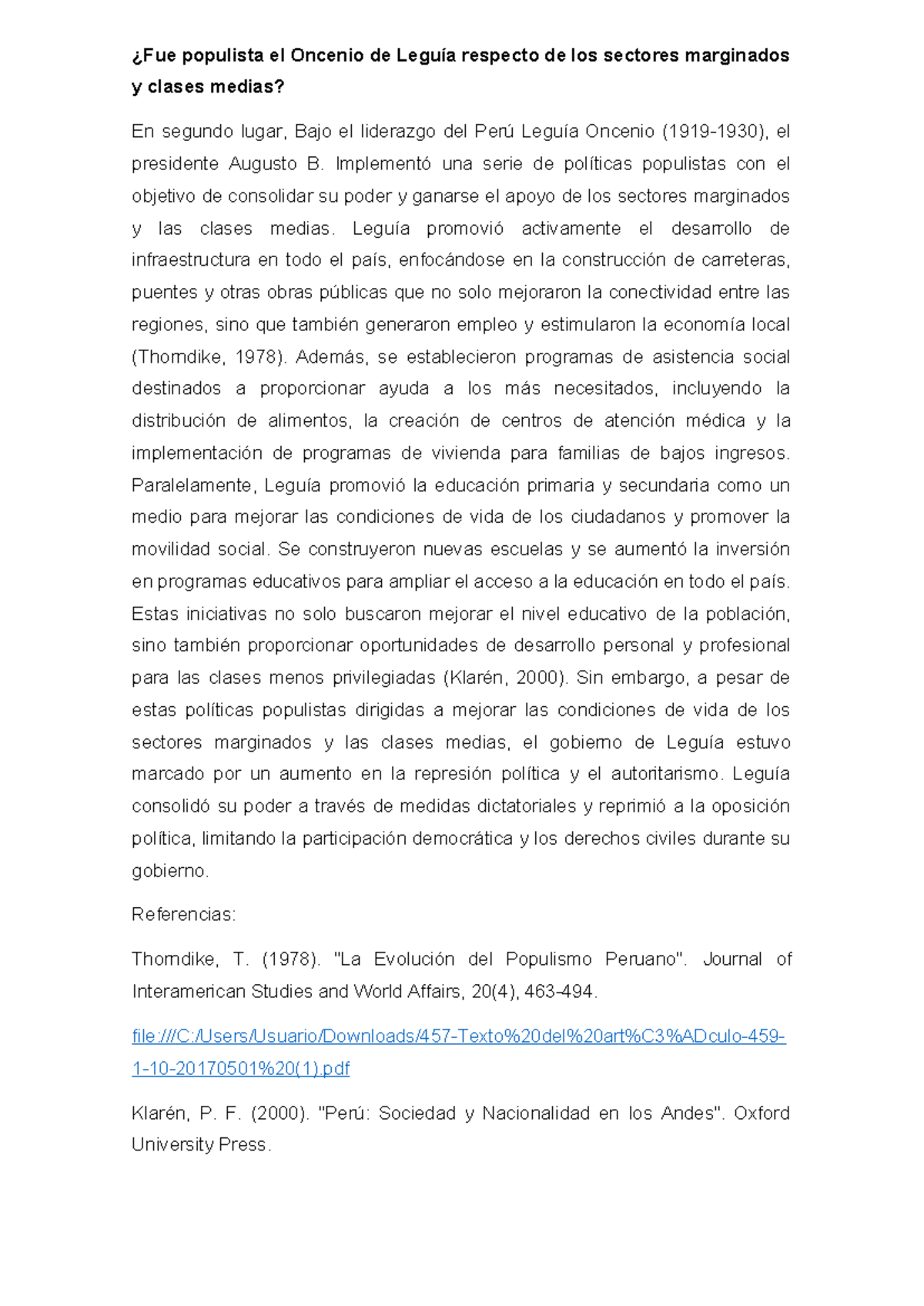 Pregunta 2 - fffffffffff - ¿Fue populista el Oncenio de Leguía respecto ...
