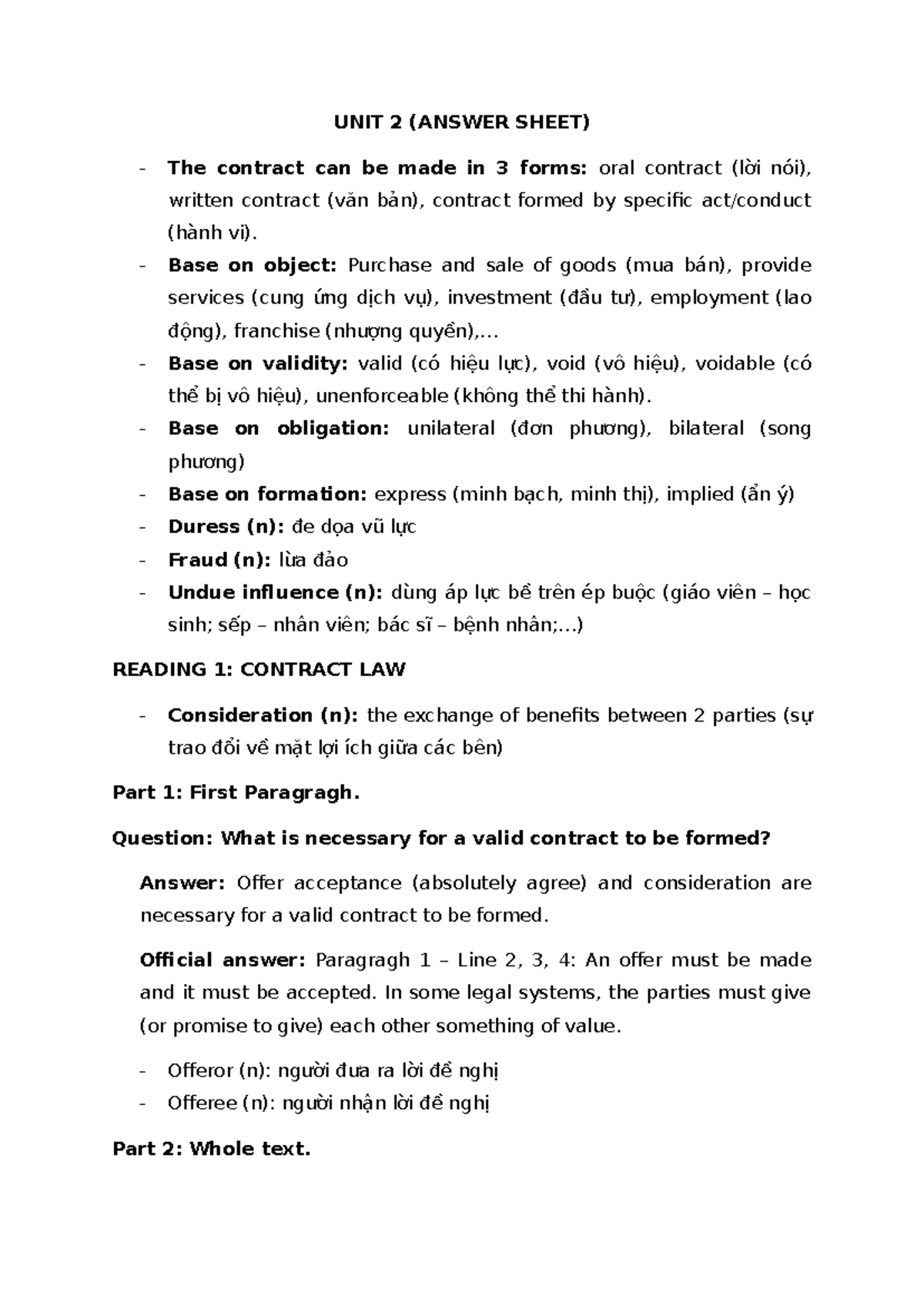 UNIT 2 ( Answer Sheet) - fffffffffff - UNIT 2 (ANSWER SHEET) The ...