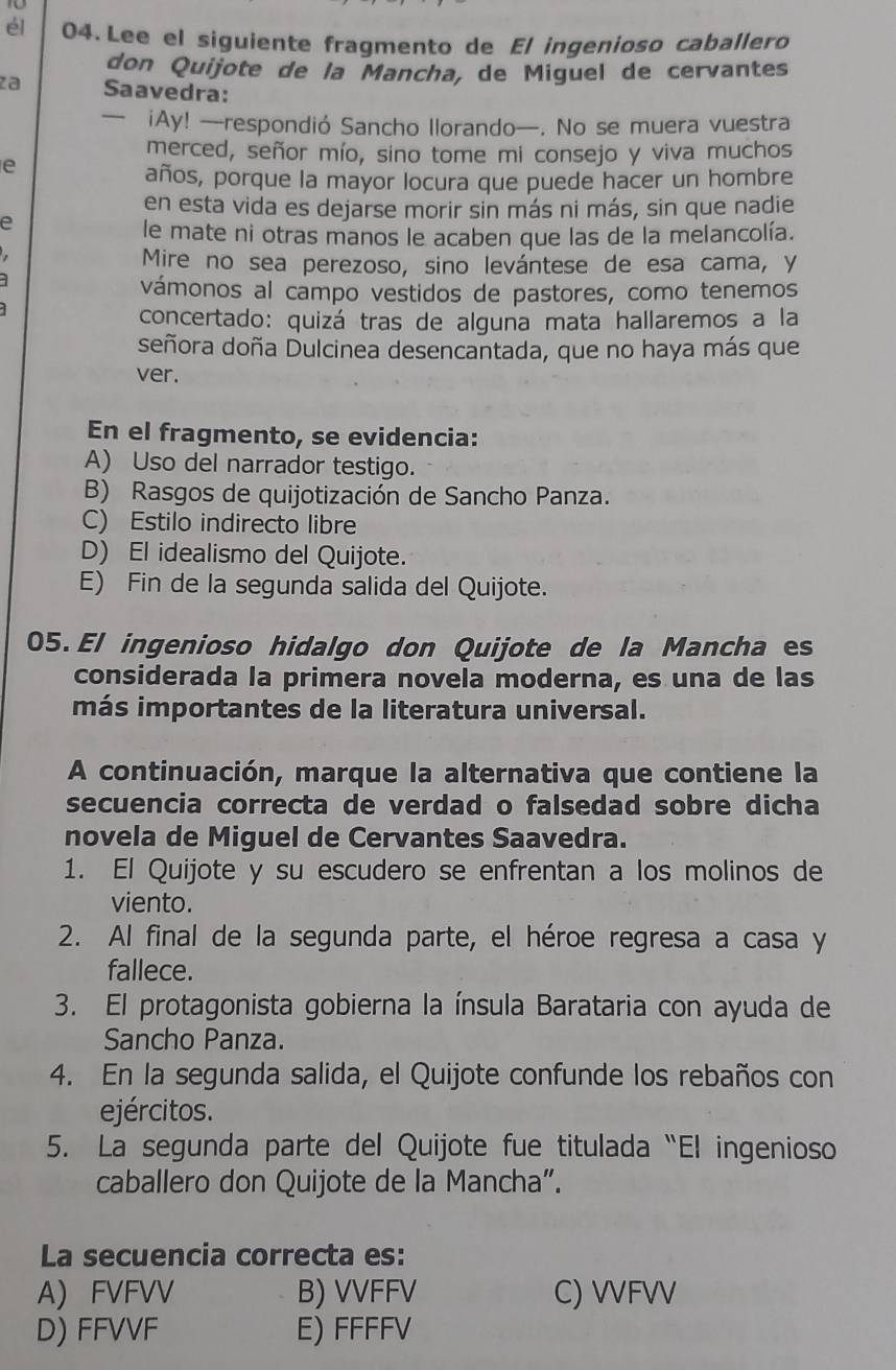 Resuelto:él 04. Lee el siguiente fragmento de El ingenioso caballero ...
