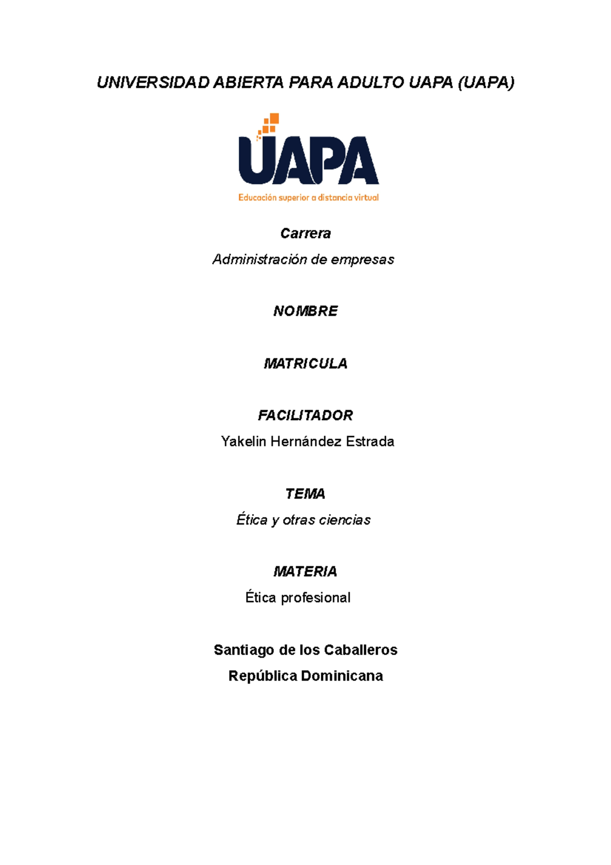 Unidad 3 de etica profecinal uapa fffsd - UNIVERSIDAD ABIERTA PARA ...