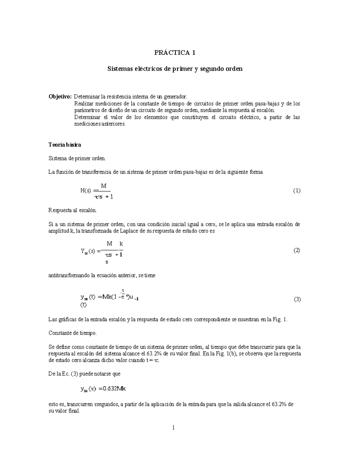 Práctica 1: Análisis de Sistemas Eléctricos de Primer y Segundo Orden ...